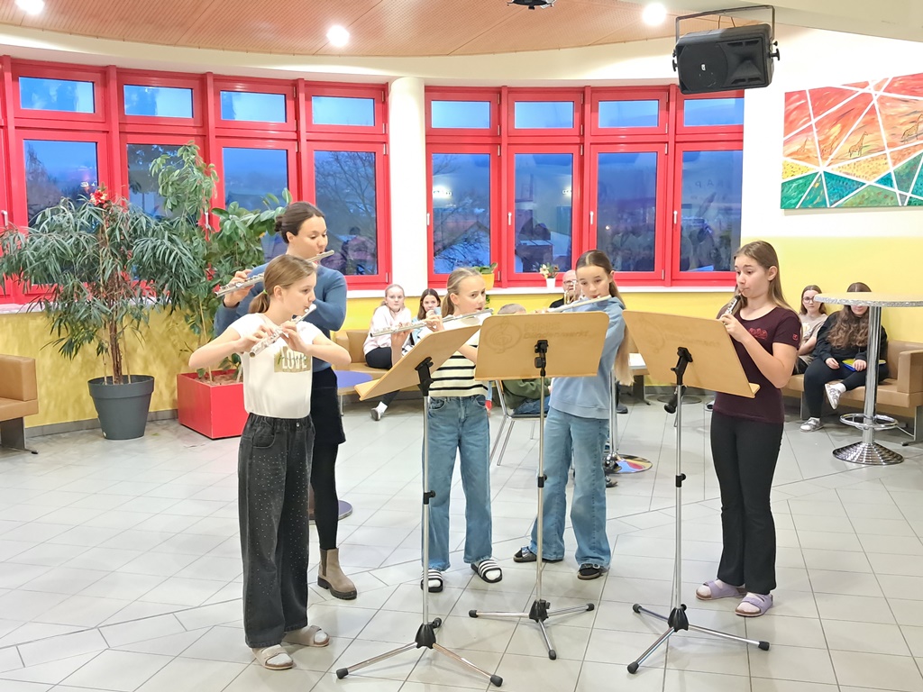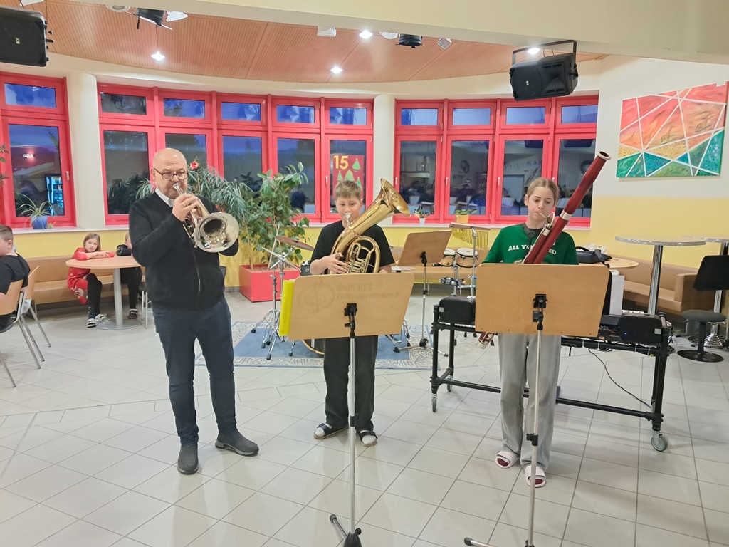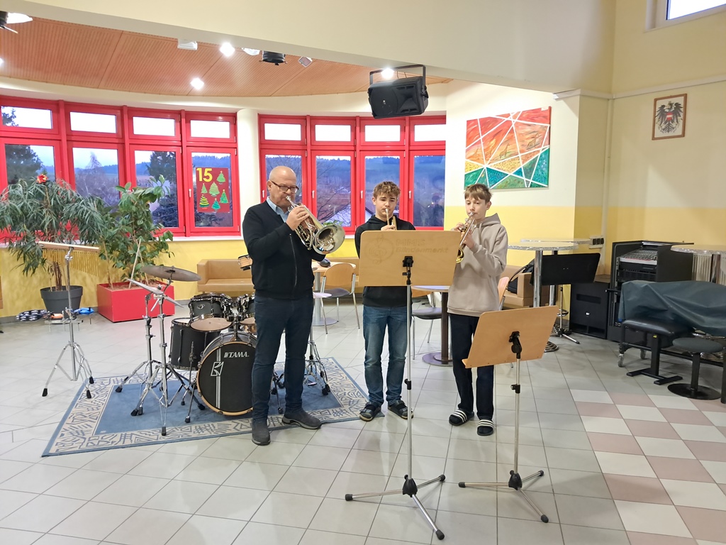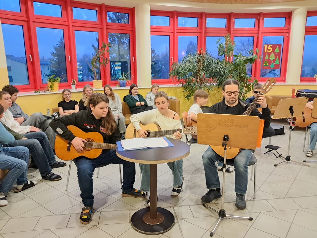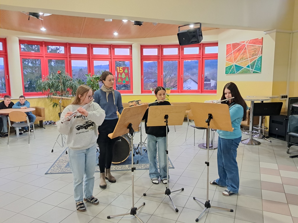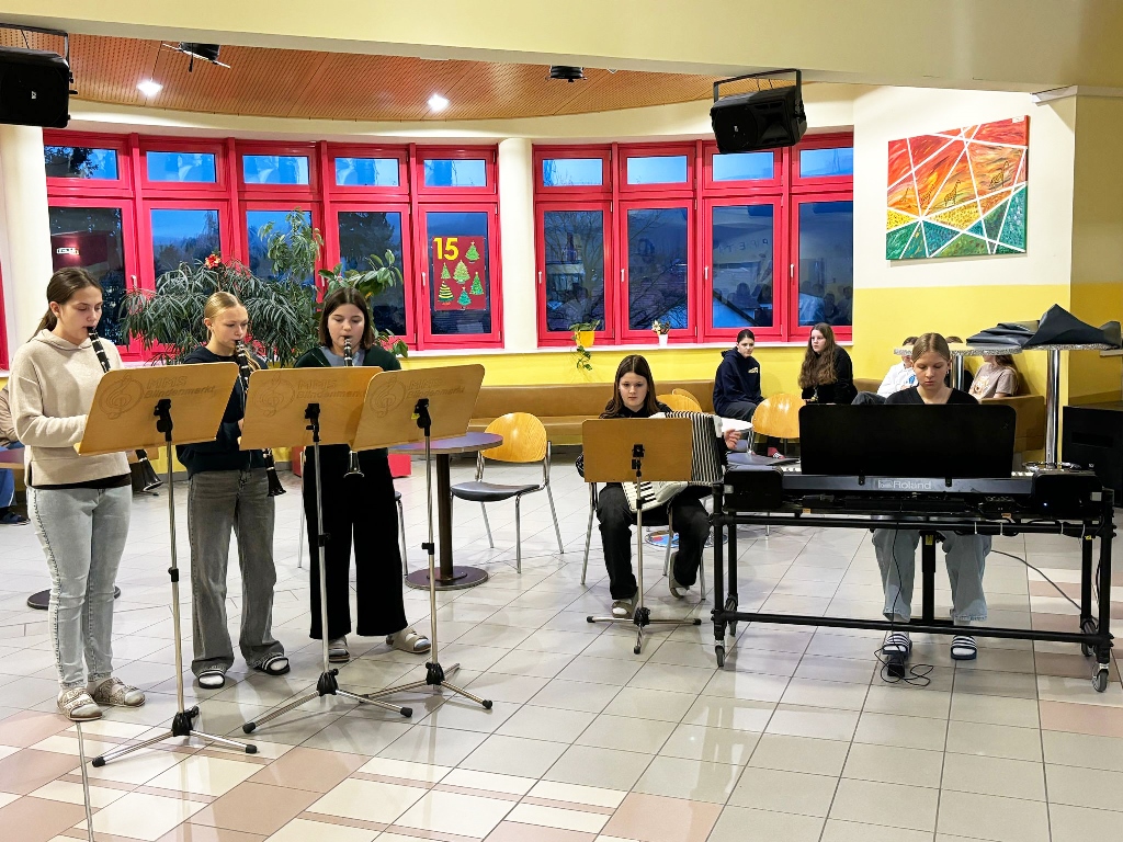 Zur besinnlichen Einstimmung auf das Weihnachtsfest musizierten unsere Schülerinnen und Schüler der Musikklassen wieder in der Aula. In der ganzen Adventszeit erklangen jeden Morgen Weihnachtslieder in der ganzen Schule. Danke an alle Instrumentallehrer, die die Vorbereitung mit den Ensembles übernommen haben.