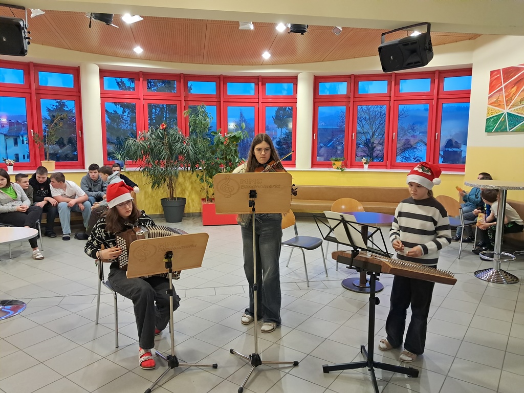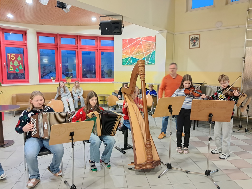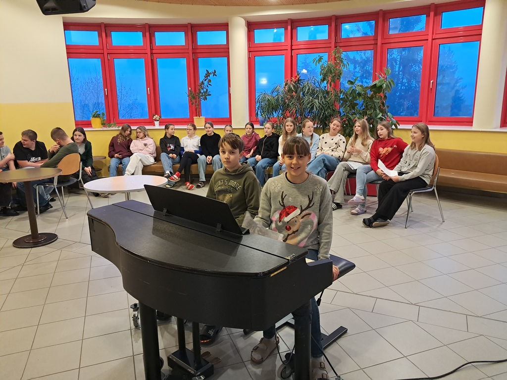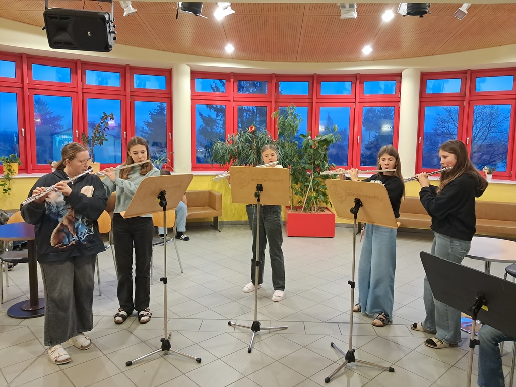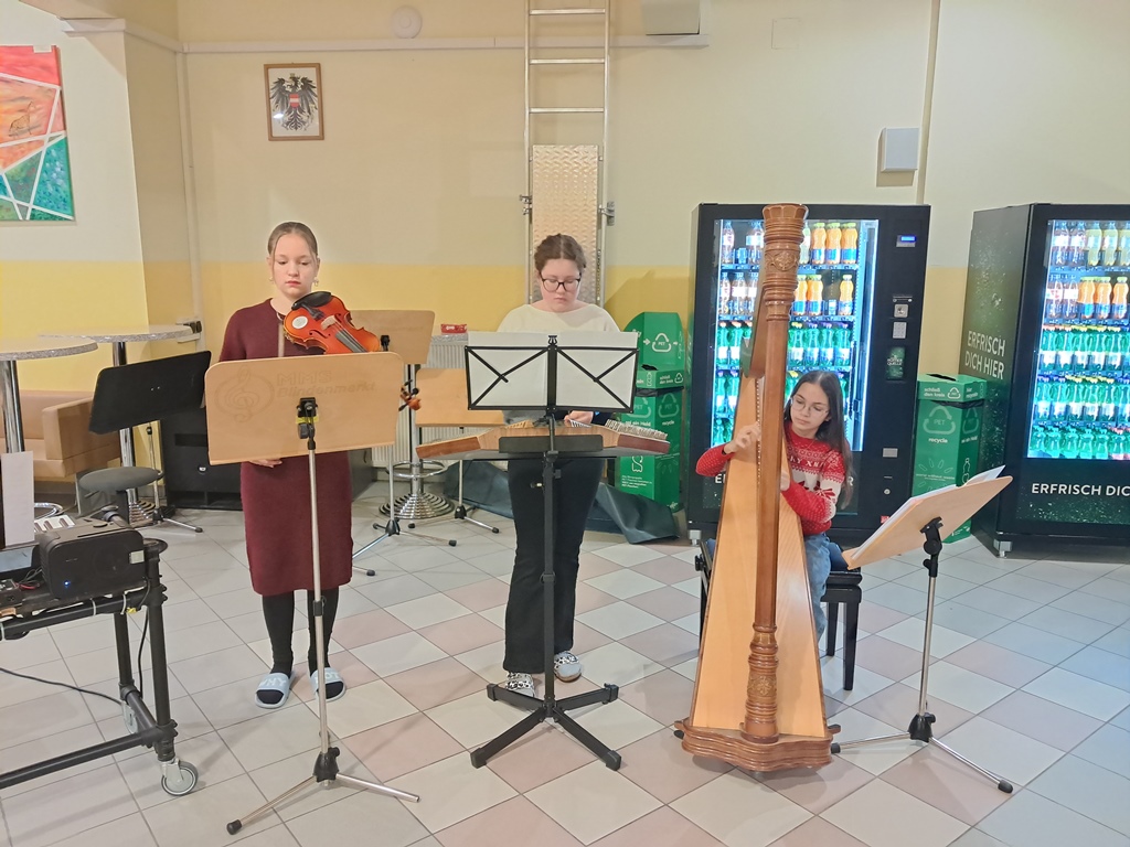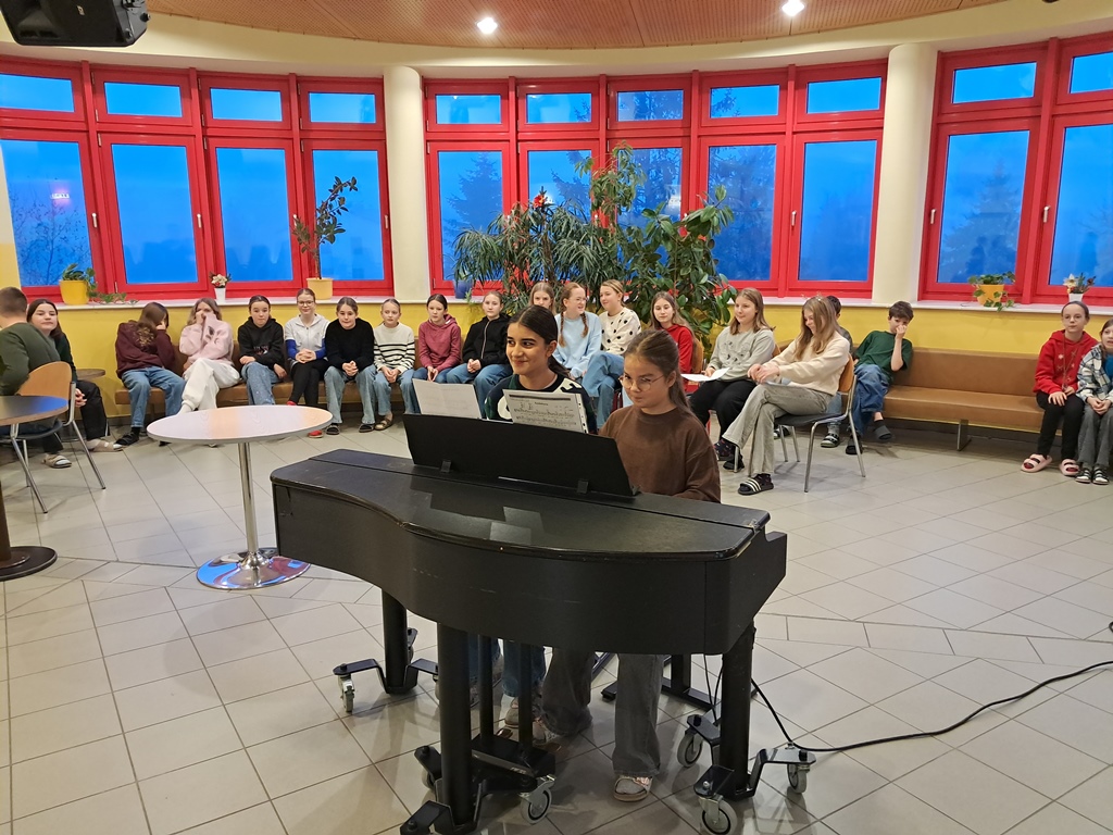 Zur besinnlichen Einstimmung auf das Weihnachtsfest musizierten unsere Schülerinnen und Schüler der Musikklassen wieder in der Aula. In der ganzen Adventszeit erklangen jeden Morgen Weihnachtslieder in der ganzen Schule. Danke an alle Instrumentallehrer, die die Vorbereitung mit den Ensembles übernommen haben.